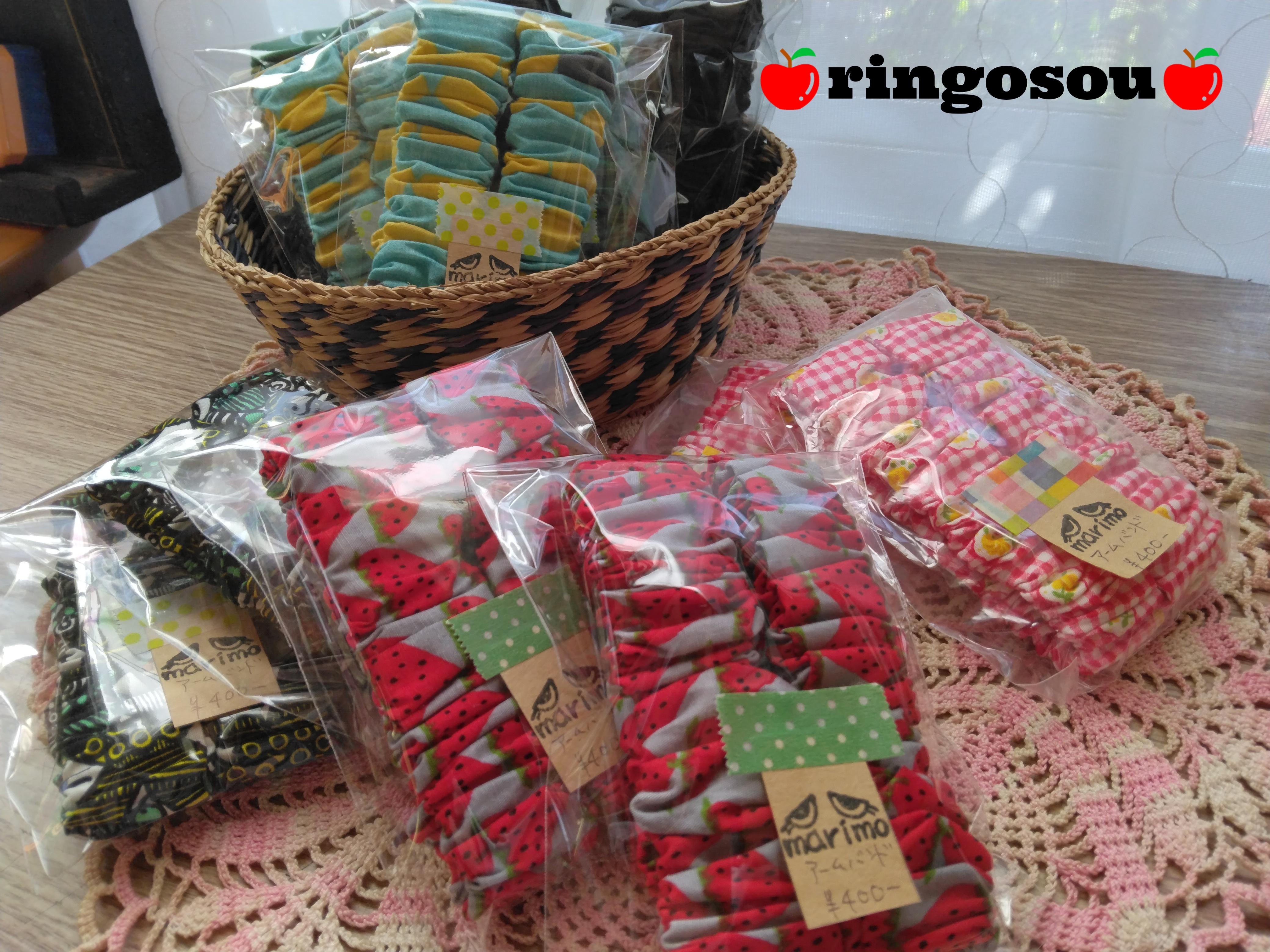 今回の山の花屋さんでは、林檎荘の実店舗時代に販売していた布小物作品(私が製作したもの)も一部セールで販売させて頂きます。